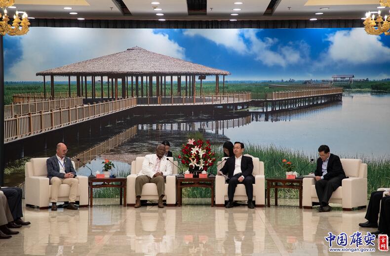 張國華代表河北省委、省政府和雄安新區(qū)黨工委、管委會對駐華使節(jié)代表團到新區(qū)訪問考察表示熱烈歡迎,并轉(zhuǎn)達了河北省委、省政府主要領(lǐng)導對到訪外賓的問候。他說,設立河北雄安新區(qū)是以習近平同志為核心的黨中央作出的一項重大歷史性戰(zhàn)略選擇,是千年大計、國家大事。習近平主席親自謀劃、親自部署、親自推動,傾注了大量心血。目前,雄安新區(qū)“1+4+26”規(guī)劃體系和“1+N”政策體系等頂層設計基本完成,重點片區(qū)和重大項目建設進展順利,京雄城際和雄安高鐵站開通運營,生態(tài)環(huán)境治理取得明顯成效,一幅森林環(huán)城、水城相融、城綠交織的美麗中國畫卷正在徐徐鋪展。下一步,新區(qū)將堅持開發(fā)建設與功能承接并舉,以加快“形成新形象、建設新功能、發(fā)展新產(chǎn)業(yè)、聚集新人才、構(gòu)建新機制”為主要抓手,全力加快重大工程和重點項目建設,全面打造“雄安服務”品牌和一流營商環(huán)境,持續(xù)加強生態(tài)環(huán)境治理,高標準高質(zhì)量高效率建設雄安新區(qū),盡快把宏偉藍圖變成生動現(xiàn)實。誠摯歡迎各國朋友共同參與未來之城建設發(fā)展,共享新區(qū)發(fā)展機遇。