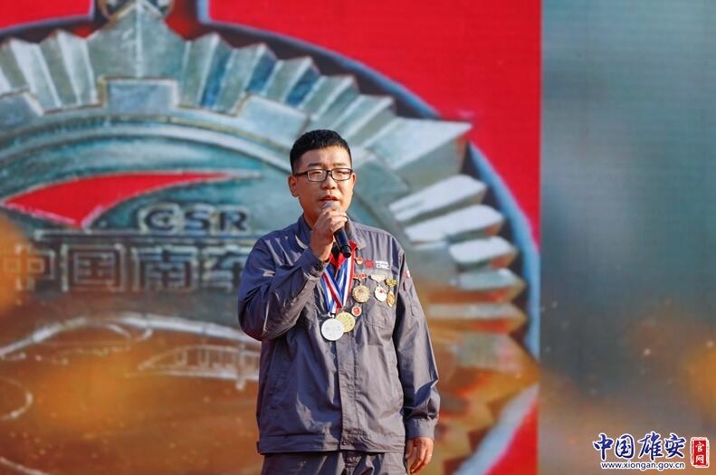 來自中車石家莊車輛有限公司的馬龍飛向觀眾講述了《大國工匠是這樣煉成的》的故事。中國雄安官網記者毛鶴然 攝