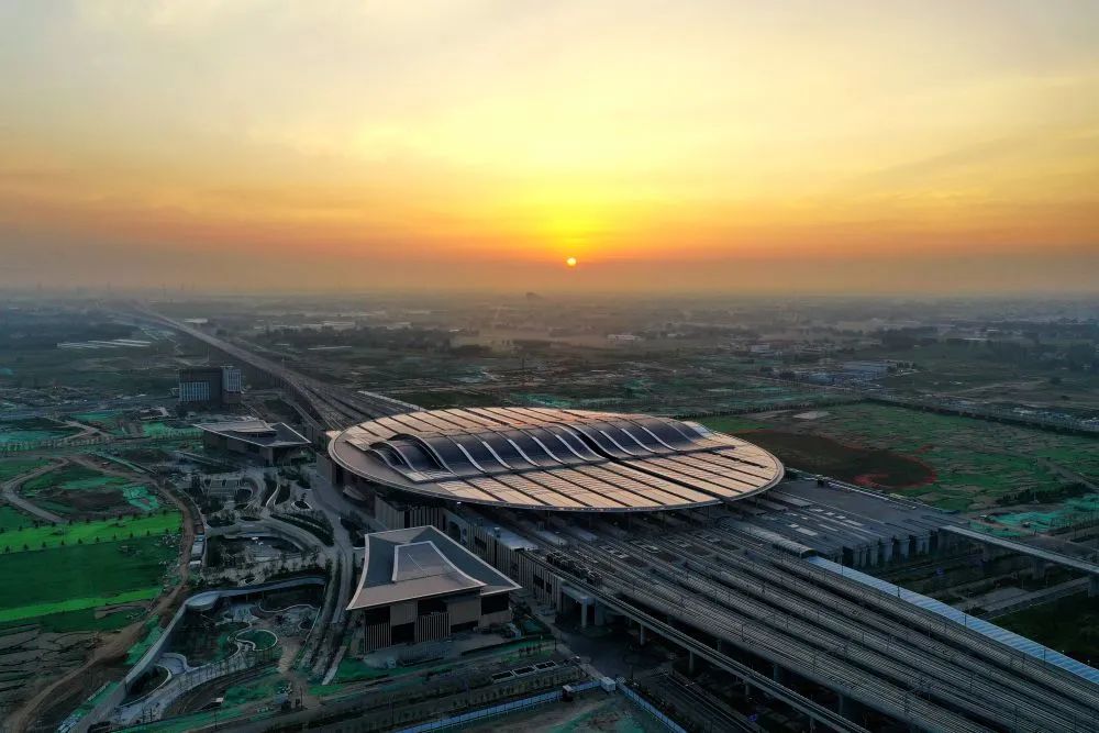 7月1日在河北雄安新區(qū)京雄城際鐵路雄安站拍攝的日出(無人機(jī)照片)。新華社記者牟宇 攝