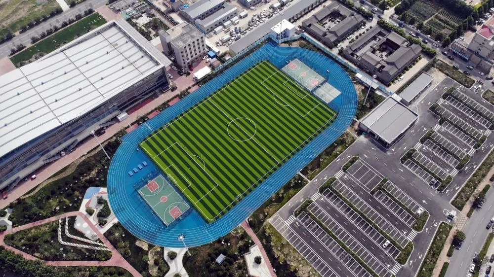 這是7月9日拍攝的容城縣體育公園(無人機(jī)照片)。新華社記者駱學(xué)峰 攝