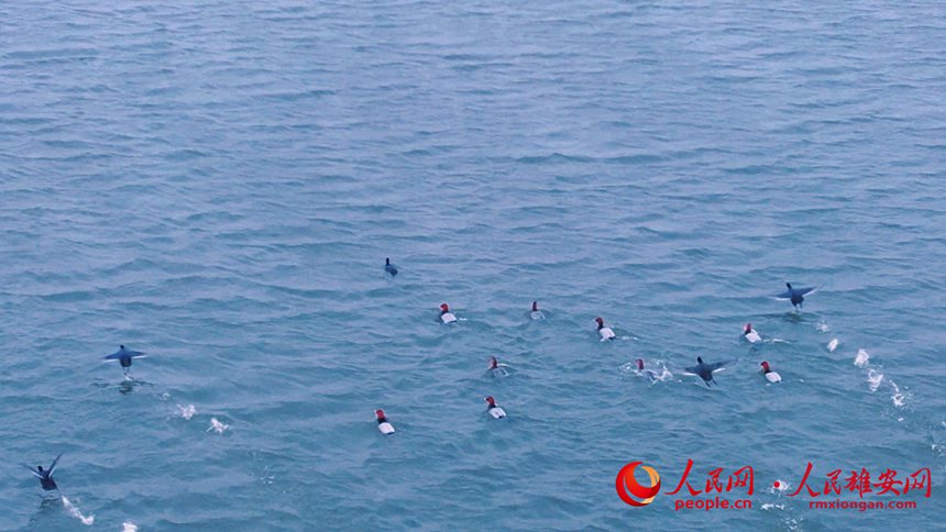 人民網(wǎng)雄安3月24日電 “春江水暖鴨先知。”一到春天,大批候鳥陸續(xù)抵達(dá)白洋淀,開始筑巢產(chǎn)卵、孵化育雛,11月份再遷徙到南方避寒越冬。日前,在白洋淀水域拍攝到遷徙歸來的國家一級(jí)保護(hù)動(dòng)物青頭潛鴨,鳳頭鸊鷉和大種群的國家“三有”保護(hù)動(dòng)物紅頭潛鴨、白骨頂雞,它們?cè)诘碇袝秤巍㈡覒?、追逐、覓食,萌態(tài)十足。
