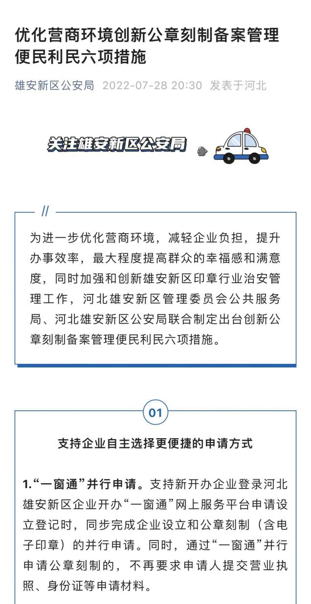 雄安公安始終堅(jiān)持“人民至上”宗旨,讓數(shù)據(jù)“多跑路”,讓群眾“少跑腿”。樹立“靠前一步、主動(dòng)作為”理念,大力整合公安窗口業(yè)務(wù),推進(jìn)公安政務(wù)服務(wù)事項(xiàng)“一站式辦結(jié)”,將市級(jí)公安機(jī)關(guān)權(quán)限的治安、禁毒、網(wǎng)絡(luò)安全管理等共52個(gè)公安政務(wù)服務(wù)事項(xiàng)受理窗口集中到雄安新區(qū)公安局人口與出入境服務(wù)大廳,實(shí)行“前臺(tái)綜合收件、后臺(tái)分類審批、統(tǒng)一窗口出件”,進(jìn)一步提高新區(qū)公安政務(wù)服務(wù)標(biāo)準(zhǔn)化、規(guī)范化、便利化水平,真正做到公安服務(wù)“一窗通辦”。制定出臺(tái)創(chuàng)新公章刻制備案管理便民利民6項(xiàng)措施,實(shí)現(xiàn)公章刻制備案全流程網(wǎng)上辦理,壓縮備案時(shí)長,實(shí)現(xiàn)企業(yè)開辦一日辦結(jié),企業(yè)注銷及時(shí)辦理,以旅館業(yè)等9個(gè)行業(yè)領(lǐng)域先行試點(diǎn)“證照聯(lián)辦”,推行網(wǎng)上并聯(lián)審批,切實(shí)降低企業(yè)開辦成本,減輕企業(yè)負(fù)擔(dān)。加強(qiáng)監(jiān)管體系建設(shè),全面實(shí)行行政許可事項(xiàng)清單管理,扎實(shí)做好重點(diǎn)行業(yè)領(lǐng)域監(jiān)管,著力打造公平公正的市場(chǎng)環(huán)境。一系列便民利企舉措,傳遞出雄安公安優(yōu)化營商環(huán)境的信心和決心,也贏得了人民群眾信賴與支持。