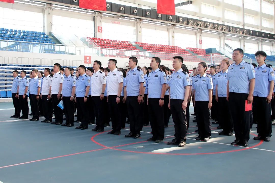 開幕式現(xiàn)場,全體人員隊(duì)列整齊、警容嚴(yán)整,莊嚴(yán)奏唱《中華人民共和國國歌》,裁判員代表和運(yùn)動(dòng)員代表分別進(jìn)行宣誓。