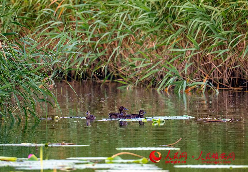 去年夏天,青頭潛鴨首次被發(fā)現(xiàn)在白洋淀繁殖育雛,表明白洋淀已成為世界極危物種青頭潛鴨的繁殖地之一。青頭潛鴨能夠“安家”白洋淀,這與白洋淀生態(tài)環(huán)境的日益改善、當?shù)鼐用駥B類保護意識的提高密不可分,也充分體現(xiàn)了白洋淀鳥類的保護和管理成效。
