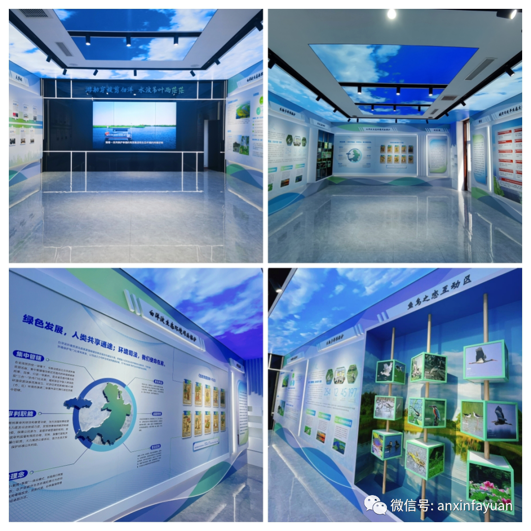 該基地坐落于安新縣旅游東路白洋淀環(huán)境資源法庭院內(nèi),毗鄰景區(qū)碼頭,地理位置優(yōu)越,四周皆為林蔭植被,環(huán)境優(yōu)美。內(nèi)部采用了先進的聲、光、影等多媒體技術,更好地呈現(xiàn)白洋淀人文環(huán)境、生態(tài)治理、生物多樣性司法保護、庭審現(xiàn)場實況等內(nèi)容,集理念傳播、成果展示、法治教育、文化推廣等功能于一體,讓觀者在實地可同時沉浸式、互動式、體驗式感受生態(tài)保護司法文化,展示白洋淀生態(tài)治理和環(huán)境資源司法保護事業(yè)取得的新成就,提升人民群眾的環(huán)保意識和法治理念,打造安新法院法治文化新名片,在實踐中將新時代人民法院文化融入工作全過程。