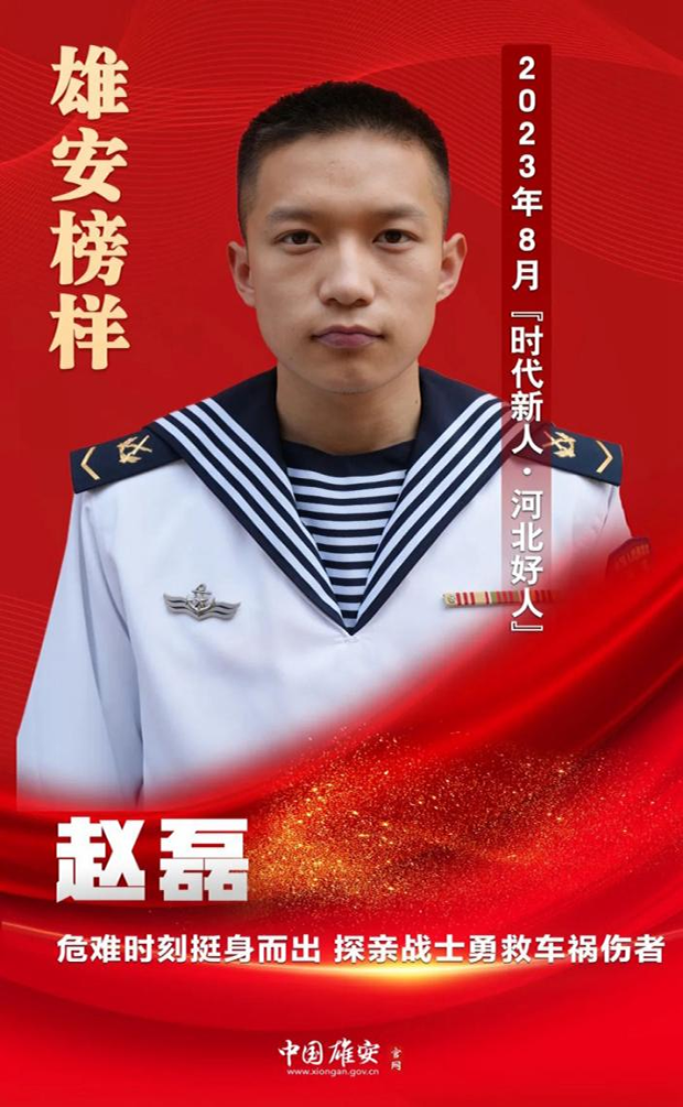 據(jù)了解,趙磊出生于2000年,2020年9月在大學(xué)期間應(yīng)征入伍,現(xiàn)在是海軍某部的一名潛水員。趙磊在部隊(duì)多次參加重大活動(dòng)受到表彰,榮立集體三等功一次。他在干好本職工作的同時(shí),還熱心參與社會(huì)公益事業(yè),今年7月被聘為“雄縣2023年征兵宣傳形象大使”和“雄縣職教中心校外思政輔導(dǎo)員”,還被河北省文明委評(píng)為“‘雙爭(zhēng)’有我——2023年8月‘時(shí)代新人·河北好人’”。