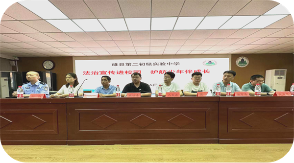 按照“八五”普法工作要求,河北省保定市雄縣扎實開展“關愛花朵計劃”三年行動,持續(xù)加大“法治進校園”普法宣傳教育力度,厚植法治土壤,“護苗”茁壯成長,不斷增強在校學生的法治觀念和自我保護能力。2024年6月5日,雄縣縣委政法委聯(lián)合縣人大辦、縣政協(xié)辦、團縣委、縣婦聯(lián)、縣公安局、縣教育局、縣民政局等部門在雄縣第二初級實驗中學開展“法治宣傳進校園,護航少年伴成長”普法宣傳。活動由校長鄭通同志主持,有關部門領導出席并講話,部分老師、學生代表參加了活動。