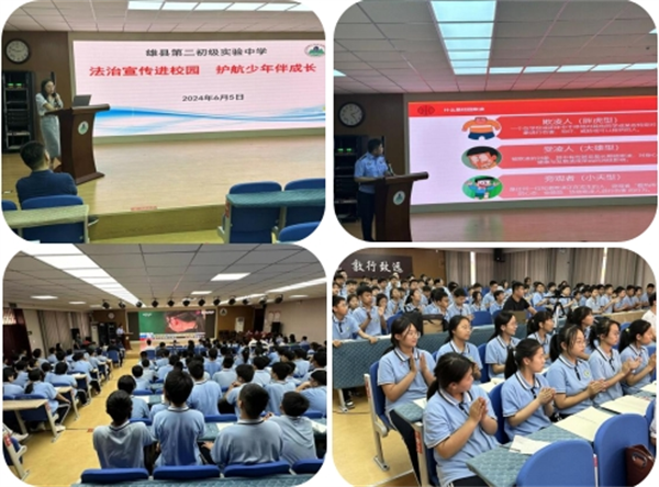 活動現場,雄縣第二初級實驗中學法治副校長蔡朝陽同志圍繞預防校園欺凌、河北冀雄律師事務所律師馮萱圍繞《中華人民共和國未成年人保護法》分別向學生做了專題講座。通過生動的案例展示和深入淺出的講解,引導學生樹立法治意識,自覺抵制不良誘惑,切實增強法治觀念和自我保護能力。同學們對于上述法律法規(guī)以及如何養(yǎng)成良好的行為習慣有了較為全面的了解,并掌握了基本的法律知識。現場同學們專注認真地學習,積極參與互動,活動氣氛熱烈,收獲圓滿。