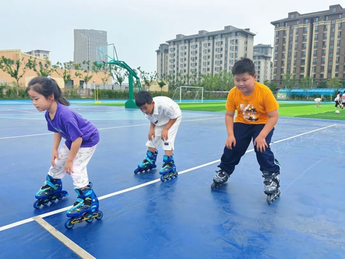 輪滑課上孩子們認(rèn)真練習(xí)每一個動作 雄安容西云溪小學(xué)供圖