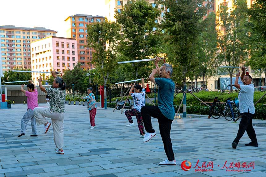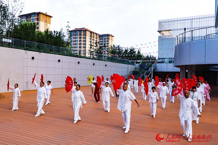 容東居民晨練太極扇。人民網(wǎng) 蘇春丹攝