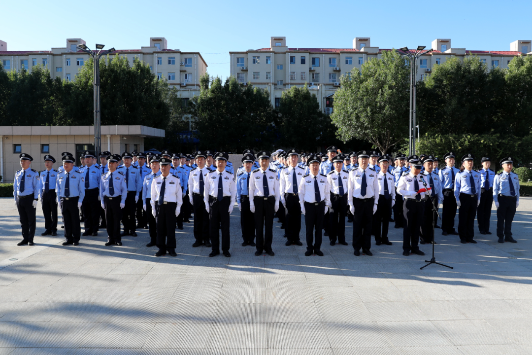 伴隨著雄壯的中華人民共和國(guó)國(guó)歌,鮮艷的五星紅旗冉冉升起,在蔚藍(lán)的天空中迎風(fēng)飄揚(yáng)。全體民輔警精神抖擻、英姿勃發(fā),面向國(guó)旗莊嚴(yán)敬禮,表達(dá)對(duì)黨的無限忠誠(chéng)和對(duì)祖國(guó)的誠(chéng)摯祝福。