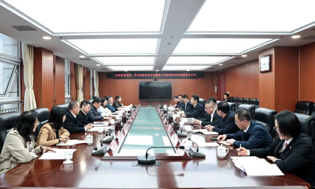 在廊坊中院,院長(zhǎng)石鋆主持召開(kāi)了雙向交流鍛煉干部調(diào)研座談會(huì)。廊坊中院研究室負(fù)責(zé)同志和三河、香河、開(kāi)發(fā)區(qū)、安次、固安五家基層法院院長(zhǎng)分別就司法服務(wù)保障京津冀協(xié)同發(fā)展及法答網(wǎng)、案例庫(kù)的工作開(kāi)展情況進(jìn)行通報(bào)交流。調(diào)研組成員分享了雙向交流鍛煉收獲,暢談了本次調(diào)研感受,希望今后能夠通過(guò)常態(tài)化溝通交流,相互學(xué)習(xí)借鑒,共同促進(jìn)司法審判工作和司法研究工作高質(zhì)量發(fā)展。