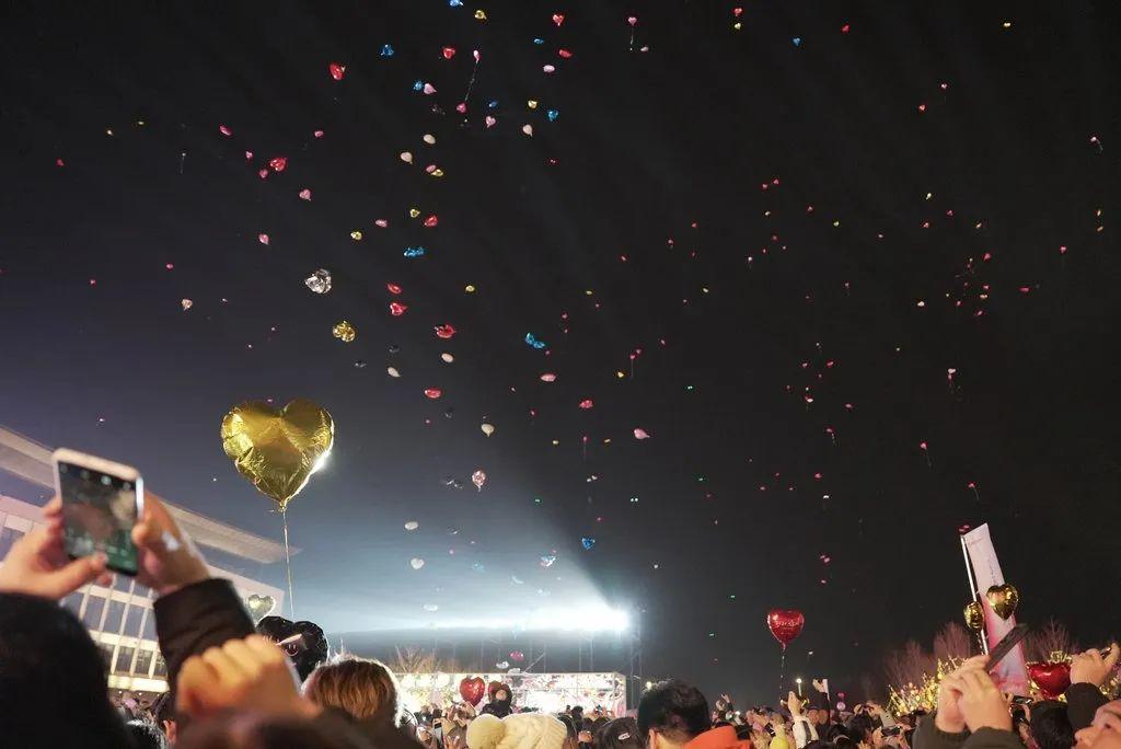 2024年12月31日晚,“未來(lái)奇妙夜”跨年活動(dòng)現(xiàn)場(chǎng),游人放飛寫(xiě)滿(mǎn)新年心愿的氣球。河北日?qǐng)?bào)記者李暢 攝