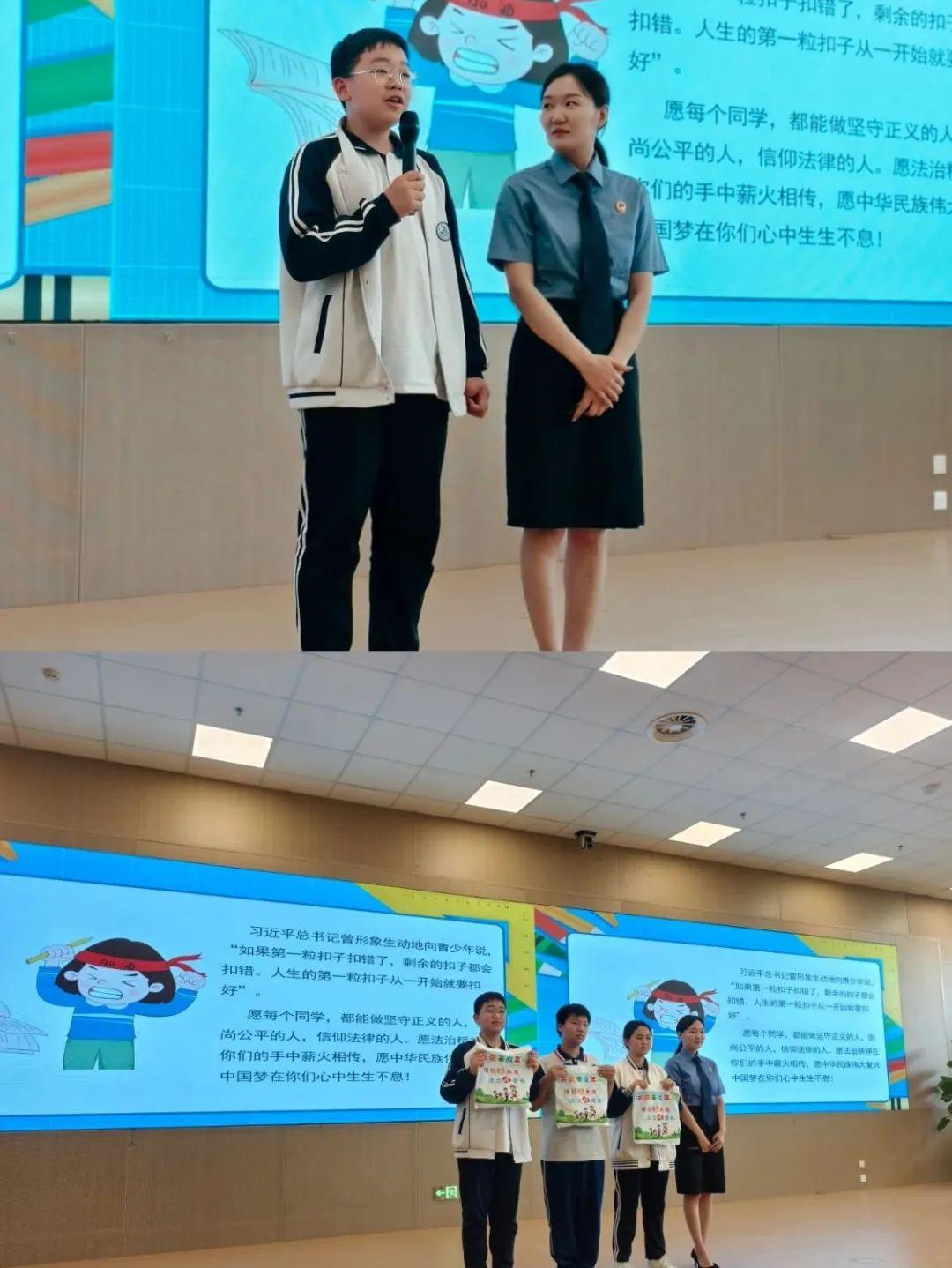 “同學(xué)們,很高興又與大家見面了。同學(xué)們的身心健康,是家長和老師關(guān)注的重點(diǎn),更是我們未成年法治工作者關(guān)注的重點(diǎn),勿以惡小而為之,小惡放任會發(fā)展成大錯。今天,我們的法治課就來幫助同學(xué)們了解未成年人常見的違法犯罪的類型、行為后果、產(chǎn)生原因、如何預(yù)防?!敝v座中,檢察官結(jié)合中學(xué)生年齡特點(diǎn)和認(rèn)知水平,選取校園欺凌、盜竊、聚眾斗毆等貼近學(xué)生生活的真實案例,用通俗易懂的語言剖析案件背后的法律關(guān)系,點(diǎn)明未成年人犯罪的危害及后果。檢察官通過“案例+法條”的形式,讓學(xué)生直觀認(rèn)識到“行為的尺度”,引導(dǎo)同學(xué)們知敬畏、守分寸、明后果、懂自護(hù),樹立良好的行為規(guī)范,遠(yuǎn)離違法犯罪和不法侵害。