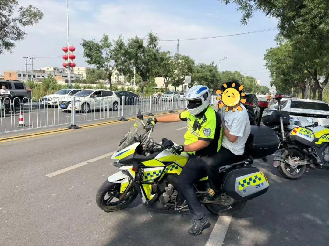 6月7日上午8時52分,安新交警在高考考點管控道路執(zhí)勤時,一輛私家車駛來,司機(jī)焦急稱車上的高考考生馬上遲到了,帶隊民警立即安排備勤騎警駕駛摩托車送考生參加考試,順利在考前抵達(dá)考點。