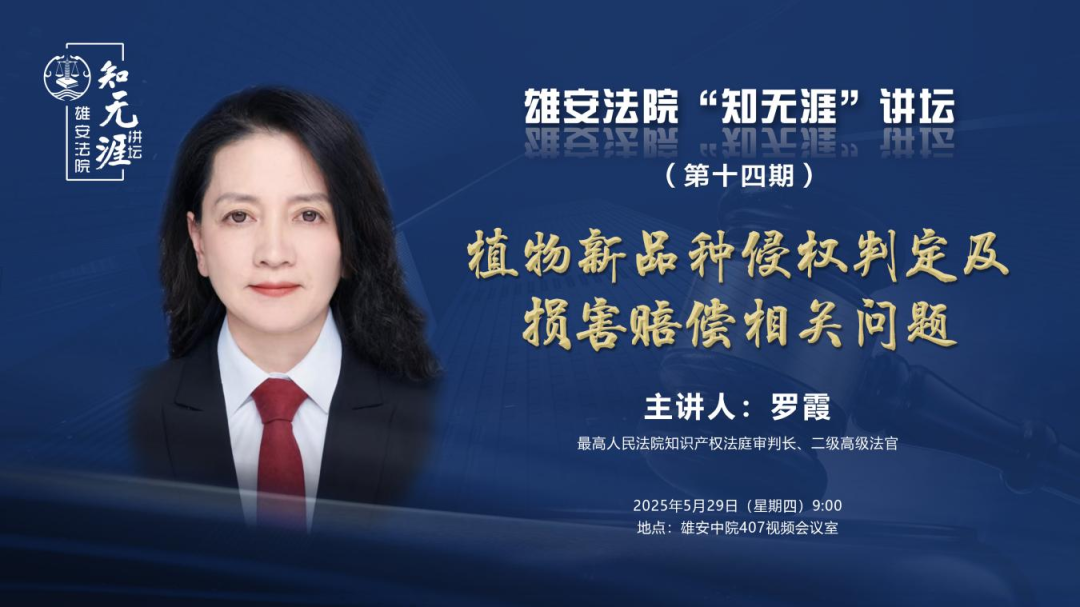 種子是農業(yè)的芯片,是國家糧食安全的“命脈”。加強種業(yè)知識產權司法保護,是人民法院的重要任務。今年以來,雄安知產法庭受理的植物新品種案件數(shù)量激增,超過去年同期的5倍。作為河北省首家集中審理包括植物新品種案件在內的技術類知識產權案件的專門法庭,雄安知產法庭準確把握種業(yè)案件審理需求,為進一步提高專業(yè)司法能力,進一步加大種業(yè)知識產權保護力度,于近日舉辦第十四期“知無涯”講壇,特邀請最高人民法院知識產權法庭審判長羅霞就種業(yè)知識產權司法保護政策和植物新品種案件審理過程中涉及的重大疑難復雜問題進行專題講授。