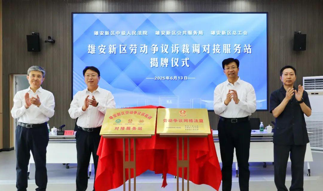 為進一步深化協(xié)作,推動勞動爭議多元化解工作提質(zhì)增效,提升雄安新區(qū)勞動者權(quán)益保護水平,6月13日,河北雄安新區(qū)中級人民法院、雄安新區(qū)公共服務(wù)局、雄安新區(qū)總工會聯(lián)合成立了雄安新區(qū)首批勞動爭議訴裁調(diào)對接服務(wù)站和首家勞動爭議網(wǎng)格法庭。