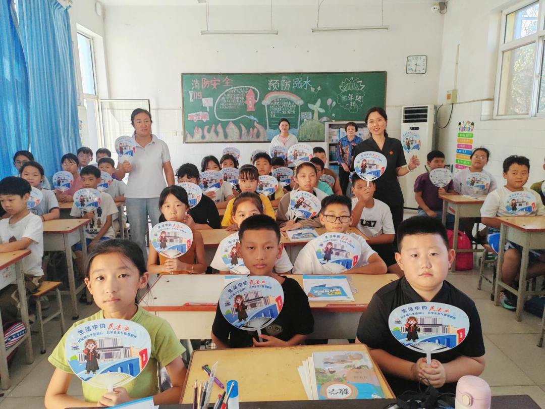 “說不!”“告訴老師!”“尋求幫助!”——孩子們舉起小手爭先恐后地回答,在歡聲笑語中學(xué)會(huì)了自我保護(hù)的知識(shí)。除了積極的互動(dòng),現(xiàn)場還為每位同學(xué)發(fā)放了未成年人司法保護(hù)品牌“雄小荷”主題宣傳扇。小小的扇子不僅送來清涼,更將法治清風(fēng)送入校園,將法治的種子播撒在每個(gè)孩子心中。