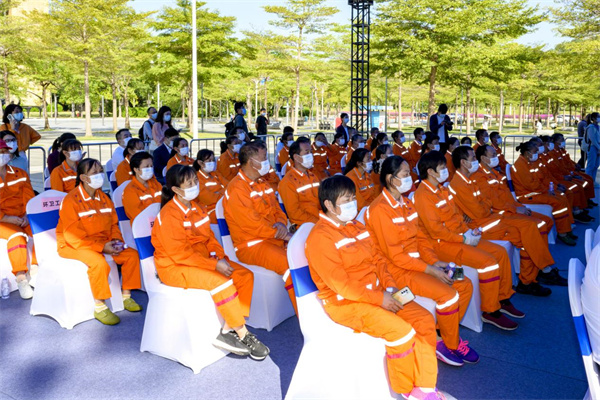 活動現(xiàn)場對全市從事一線環(huán)衛(wèi)工作累計時長超過5年的100名優(yōu)秀環(huán)衛(wèi)工人進行褒揚,10名優(yōu)秀環(huán)衛(wèi)工人代表上臺領獎。他們以實際行動譜寫了新時代的勞動者之歌,為深圳創(chuàng)建全國文明城市,創(chuàng)建美好的城市環(huán)境作出了重要貢獻。