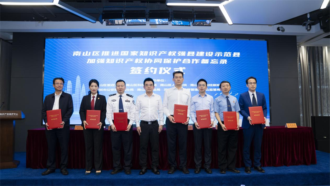 簽約儀式上,南山區(qū)委政法委、南山區(qū)科技創(chuàng)新局、南山區(qū)人民法院、南山區(qū)人民檢察院、南山區(qū)公安分局、南山區(qū)司法局、深圳市市場(chǎng)監(jiān)督管理局南山監(jiān)管局等7家單位共同簽約了《推進(jìn)國家知識(shí)產(chǎn)權(quán)強(qiáng)縣建設(shè)示范縣 加強(qiáng)知識(shí)產(chǎn)權(quán)協(xié)同保護(hù)合作備忘錄》(以下簡稱《合作備忘錄》)。