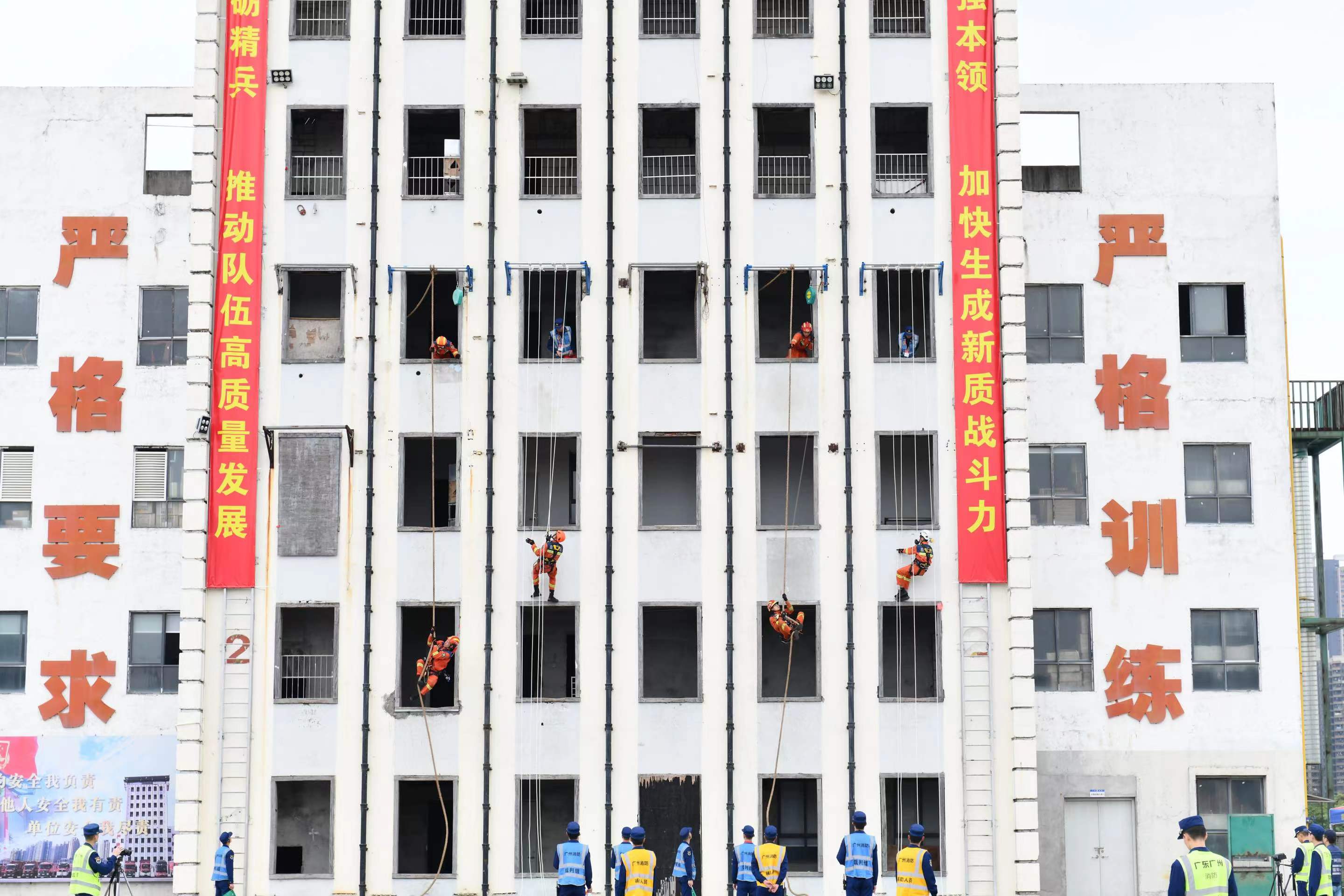 賽場上,各代表隊爭分奪秒地展開激烈角逐,比速度、比能力、比耐性,挑戰(zhàn)自我、挑戰(zhàn)極限,將平日訓練的消防救援技能一一發(fā)揮。