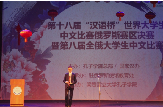本次比賽由孔子學(xué)院總部/國(guó)家漢辦主辦,中華人民共和國(guó)駐俄羅斯聯(lián)邦大使館教育處承辦,梁贊國(guó)立大學(xué)孔子學(xué)院協(xié)辦。獲得比賽前5名的選手將有機(jī)會(huì)赴華參加第十八屆“漢語(yǔ)橋”世界大學(xué)生中文比賽總決賽,并獲得赴華留學(xué)獎(jiǎng)學(xué)金。