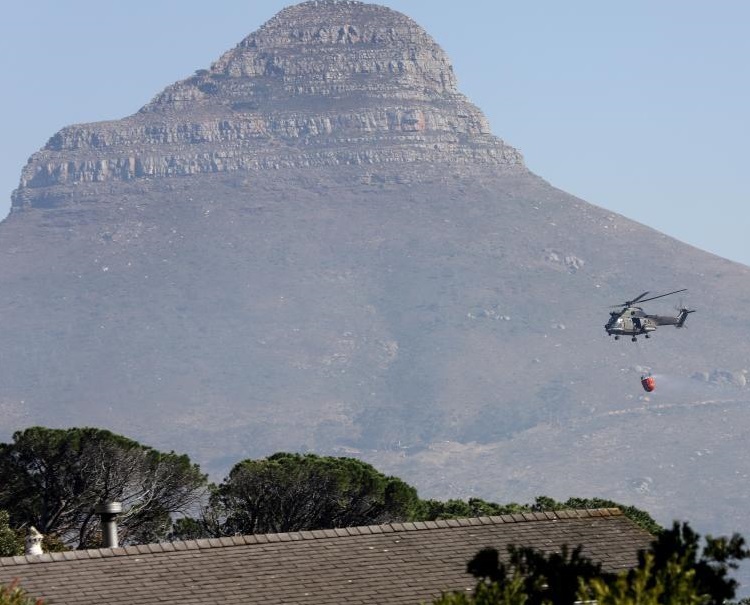 4月20日,一架軍用直升機(jī)前往南非開普敦桌山國家公園滅火。