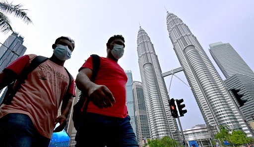 5月19日,在馬來西亞吉隆坡,行人戴著口罩走在路上。新華社發(fā)(張紋綜攝)