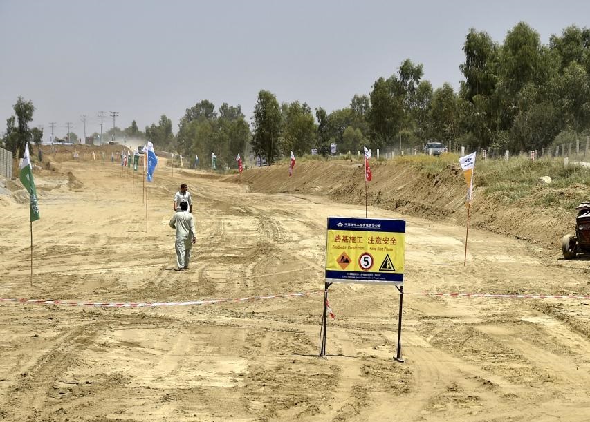 這是5月28日在巴基斯坦西北部開伯爾-普什圖省拍攝的拉沙卡伊特別經(jīng)濟(jì)區(qū)項(xiàng)目施工現(xiàn)場。