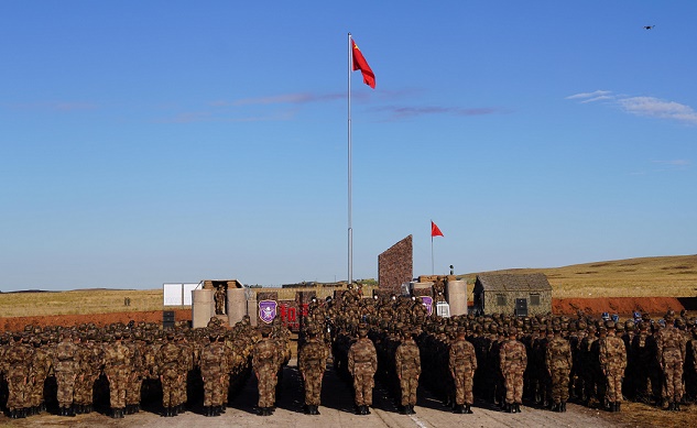 9月12日,在俄羅斯奧倫堡州東古茲靶場(chǎng),中方參演部隊(duì)舉行開營(yíng)儀式。