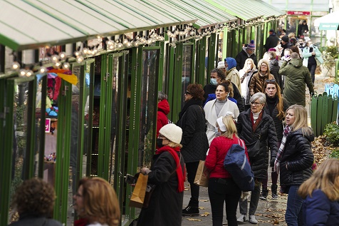 12月7日,人們在美國紐約時(shí)報(bào)廣場上的一家咖啡店消費(fèi)。