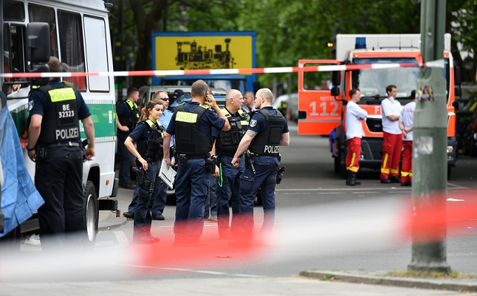 6月8日,警察在德國柏林車輛沖入人群事件現(xiàn)場工作。