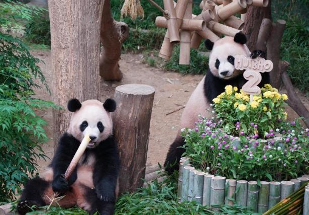 愛(ài)寶樂(lè)園為雙胞胎大熊貓準(zhǔn)備了用竹子制成的大型生日蛋糕,生日禮物則包括清涼的冰床和各類(lèi)用竹子制成的“豐容”玩具等。據(jù)愛(ài)寶樂(lè)園方面介紹,雙胞胎出生時(shí)體重分別只有180克和140克,如今體重都已接近70公斤。