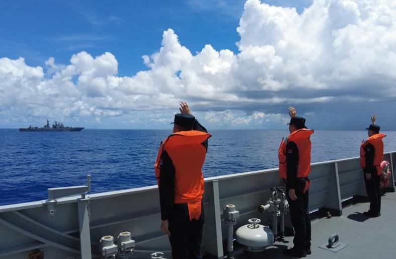 中俄“海上聯(lián)合-2025”聯(lián)合演習(xí)當(dāng)?shù)貢r間1日至5日在俄羅斯符拉迪沃斯托克附近??沼蚺e行。演習(xí)結(jié)束后,參與演習(xí)的中國海軍導(dǎo)彈驅(qū)逐艦紹興艦、綜合補給艦千島湖艦與俄羅斯海軍“特里布茨海軍上將”號大型反潛艦等3艘水面艦艇及2架艦載直升機組成聯(lián)合編隊,位西太平洋某海域組織海上聯(lián)合巡航。