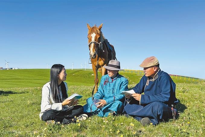 占淑瑩律師(左一)在輝騰錫勒草原為牧民講解法律知識(shí)。