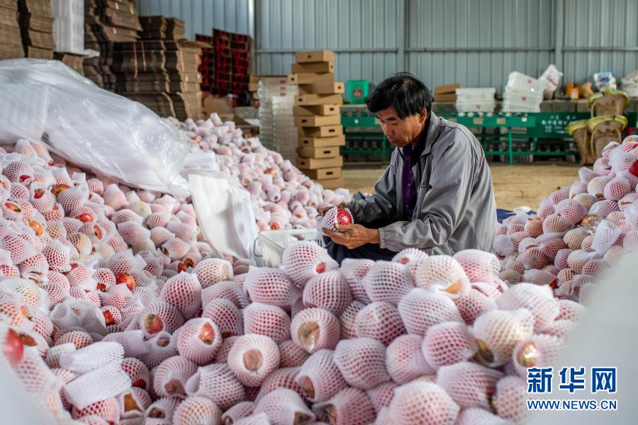 云南省會澤縣娜姑鎮(zhèn)牛泥塘村童盟種植專業(yè)合作社的農(nóng)民在分揀石榴(2020年9月29日攝)。新華社記者 胡超 攝