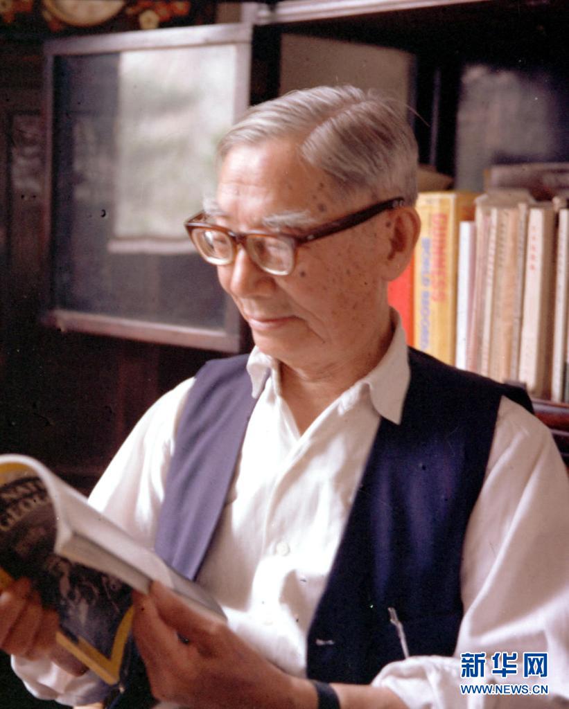 這是茅以升在看書(資料照片)。新華社發(fā)