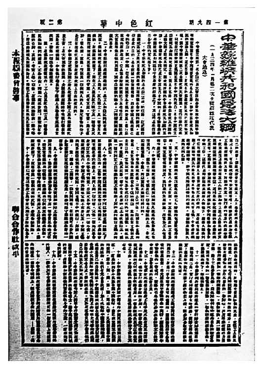 1934年1月,中華蘇維埃第二次全國代表大會(huì)在瑞金召開。到會(huì)代表693名,候補(bǔ)代表83名。大會(huì)通過《中華蘇維埃共和國憲法大綱》等文件。(資料圖片)