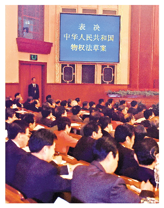 2007年3月,十屆全國人大五次會(huì)議通過《中華人民共和國物權(quán)法》,對(duì)于堅(jiān)持和完善國家基本經(jīng)濟(jì)制度、保護(hù)權(quán)利人的物權(quán)、加快構(gòu)建社會(huì)主義和諧社會(huì),具有十分重要的意義。(資料圖片)