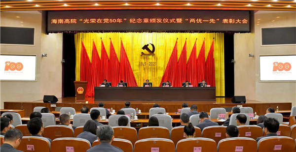 6月30日上午,海南省高院隆重召開“光榮在黨50年”紀(jì)念章頒發(fā)儀式暨“兩優(yōu)一先”表彰大會(huì)。省高院黨組書記、院長(zhǎng)陳鳳超出席會(huì)議并講話。