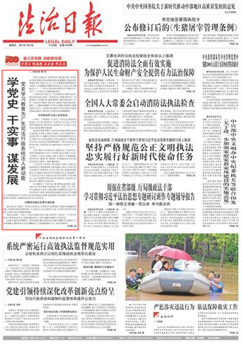 廣東省司法廳黨委書記、廳長陳旭東近日接受《法治日報》記者采訪時介紹說,廣東省司法廳認(rèn)真落實黨中央、廣東省委相關(guān)工作部署,用心規(guī)劃“路線圖”,確?!耙?guī)定動作”不走樣、“自選動作”有特色,將黨史學(xué)習(xí)教育作為強化理論武裝、凝聚人心力量的有效載體,把為民辦實事作為檢驗學(xué)習(xí)教育成效的“試金石”,進而轉(zhuǎn)化成為推動廣東司法行政工作改革發(fā)展的全新動力,更好回應(yīng)人民群眾法治領(lǐng)域新需求。