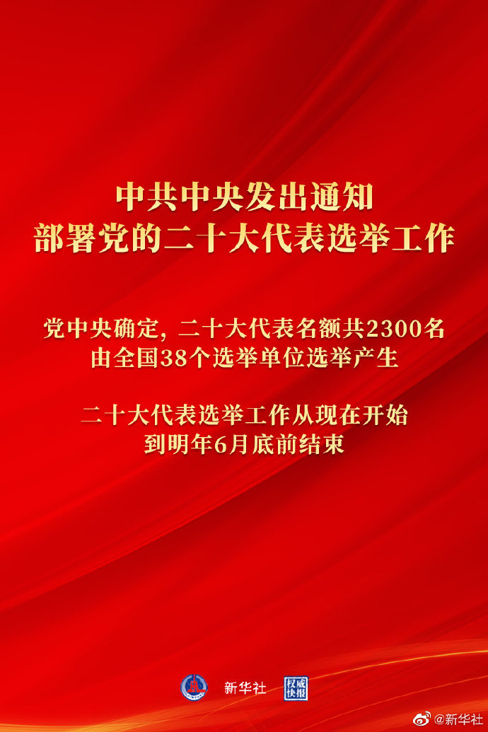 二十大代表選舉工作從現(xiàn)在開始,到明年6月底前結(jié)束。
