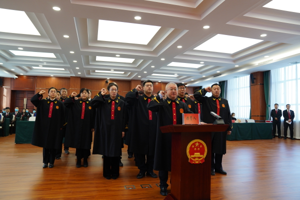 憲法宣誓活動現(xiàn)場,新任職的院領(lǐng)導(dǎo)班子成員、審判委員會委員、審判員,崗位調(diào)整的科級干部,新入額的法官和試用期滿轉(zhuǎn)正人員共計26名干警,在院黨組書記、院長周興志領(lǐng)誓下,舉起右手莊嚴(yán)進行憲法宣誓。