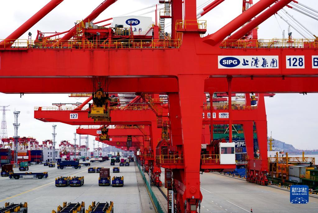 2月17日拍攝的上海洋山港四期自動化碼頭。新華社記者 楊有宗 攝